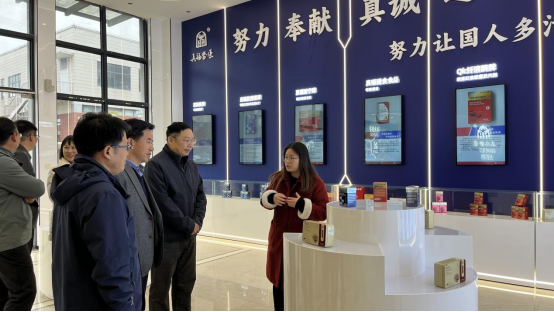 在實地參觀了公司展廳及高端智能原料車間后,雙方在會議室展開座談。董艷山博士向與會人員介紹了真福醫(yī)藥在研新藥的核心技術及競爭優(yōu)勢,其中枯草桿菌纖溶酶凍干粉針劑項目廣闊的應用前景及價值受到湖工大校領導的一致肯定與高度贊揚。